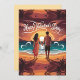 Eine romantische Szene entfaltet sich, als ein Paar Hand in Hand an einem sonnendurchfluteten Strand steht. Die Kamera schwenkt sanft von einer weiten Einstellung herein und fängt den lebendigen Sonnenuntergang ein, der warme Farbtöne über den Himmel wirft und sich auf den Wellen widerspiegelt. Während sie zum Horizont blicken, schwenkt die Kamera langsam um sie herum und zeigt das sanfte Schwappen der Wellen und das leise Rascheln der Palmwedel. Die Atmosphäre ist erfüllt von Liebe und Ruhe, verstärkt durch eine pastellfarbene Farbpalette. Die Szene geht nahtlos über und erweckt ein Gefühl von Wärme und Verbundenheit, perfekt für eine Valentinstagsfeier.