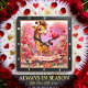Diese entzückende Wanduhr zeigt eine charmante digitale Illustration einer fröhlichen Babygiraffe mit großen, blauen Augen und einem freundlichen Lächeln. Die Giraffe ist vor einem skurrilen rosa-weißen Hintergrund platziert, der mit schwebenden roten Herzen und blühenden floralen Akzenten gefüllt ist. Ein fließendes Pergamentbanner am unteren Rand trägt die festliche Botschaft "Happy Valentine's Day!" in fetten roten Buchstaben. Die Szene ist von einem üppigen Garten aus rosa und roten Blumen umrahmt, der eine warme und festliche Atmosphäre schafft. Das Kunstwerk ist in einem modernen schwarzen Holzrahmen mit fetten weißen Ziffern für eine gute Lesbarkeit untergebracht. Dieses funktionale Accessoire für Zuhause ist ein perfektes Dekorationsstück für Kinderzimmer, Spielzimmer oder als herzliches Geschenk zum Valentinstag und bringt einen H
