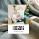 Freuen Sie sich auf diese moderne Fotokarte mit "Happiest Holidays" für Familien. Mit mutiger Typografie und Platz für ein Lieblingsbild ist es eine stilvolle Art, Urlaubswünsche zu teilen. Ein gemütliches und zeitloses Design, das die Liebe und Wärme der Saison einfängt.