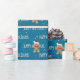 White HAPPY HOLIDAYS Text mit Lebkuchenmännern und Schneeflocken auf blauem Hintergrund. Text kann bearbeitet werden. Die Hintergrundfarbe kann geändert werden.