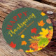 Frohes Erntedankfest farbenfrohe Blätter auf Holz Runder Aufkleber
