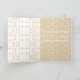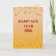 Glückliche Neujahrstext Postkarte mit goldenen Schneeflocken im Hintergrund.