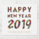 Frohes neues Jahr 2019 Farbenfrohe Bönenfeuertypog Bierflaschenetikett