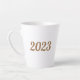 Schöne Tasse aus weißem Latte mit goldenem Design. Frohes Neujahr 2023 Tasse. Macht ein nettes Geschenk für jeden. Weiß und Gold. Einfach und niedlich.