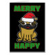 Niedlicher Cartoon Mops Weihnachtskarte. Grüne Schrift.