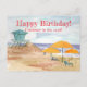 Glücklicher Geburtstag - im Sand feiern - vom Huntington Beach inspirierte Grüße, wo die Rettungsschwimmer hellblau sind und die Regenschirme die Küste so weit das Auge reicht, entlang der kalifornischen Küste handbemalten Pflaume mit Aquarell.