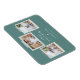 Fröhliche Empfindungen Snapshot Foto Magnet. Features, 3 gerahmte Fotos mit Scrapbook-Stil Waschbänder Akzente, zwei Template Textzeilen für Ihre Nachricht, Namen und Jahr mit Herzdetails in Weiß auf Meeresblau Hintergrund.
