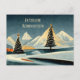 Fröhliche Weihnachten Art deco Karte mit Winterlandschaft und Bergen. Modern Abstrakt.