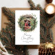 Minimal Drehbuch Frohe Weihnachtskarte mit Ihrem individuellen Foto gerahmt durch einen boho rustikalen Stil Blumenkranz.