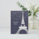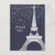 These French inspiriert Christmas postcards feature a fälschung silver image of the Eiffel Tower, with a holiday greeting and plenty of winter snow all deep midnight blue background.