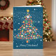 Fröhliche Weihnachtsbaummuster auf Blue Feiertagskarte