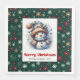 Fröhlicher Cartoon-Schneemann mit Schneeflocken Ki Serviette