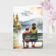 Sweet sentimental Happy Mother's Day Aquarellkarte von einem Sohn zu einer Mutter. Hübsche Aquarellbild einer Mutter, die mit ihrem Sohn auf einer Parkbank sitzt.
