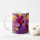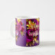 Eine lebendige Muttertags-Tasse, umhüllt von einem üppigen Strauß lila Rosen, gelber Lilien und fröhlicher Blüten, alle vor einem reichen lila Hintergrund. Abgerundet mit eleganter Goldschrift, lässt dieses herzliche Design jeden Schluck wie eine Feier von Mamas Liebe und Schönheit fühlen.