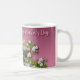 Blumenbenutzerdefiniertes Foto, Text und Hintergrund personalisierte Mutter-Tag-Tasse. Perfektes Geschenk für Mama oder Oma. Fügen Sie Ihre spezielle Nachricht, Ihr Foto und Ihren Hintergrund hinzu.