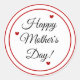 Herzlichen Glückwunsch Muttertag umgeben von runden, roten Konturen mit drei winzigen roten Herzen als Verzierung.