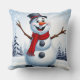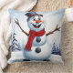 Ein glücklicher Schneemann mit rotem Schal, der ein fröhliches Lächeln zeigt, während er inmitten frisch gefallenen Schnees stehend ist. Ideal für festliche Urlaubsszenen oder Winterdesigns