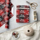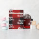 Weißer, froher Weihnachtstext in einem Schneeflockenmuster auf schwarzem und rotem Büffel kariertem Hintergrund. Text kann bearbeitet werden.
