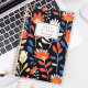 Personalisieren Sie diesen Planer mit Ihrem Namen in schwarz kursiv gerahmt durch ein weißes Rechteck, auf einem kühnen, fröhlichen Muster orangefarbener und weißer Blume auf einem schwarzen Hintergrund.