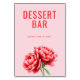 Dieses Hochzeitstisch-Schild verfügt über ein minimalistisches Design mit einem sanften rosa Hintergrund, das eine einladende und fröhliche Atmosphäre schafft. Der fettgedruckte rote Text "DESSERT BAR" wird oben prominent angezeigt, gefolgt von dem freundlichen Satz "bitte nehmen Sie sich eine Leckerei!" in kleineren Buchstaben, beide verwenden saubere serifenlose Schriften für ein modernes Aussehen. Unten fügen zwei detaillierte Pfingstrosen-Illustrationen der Komposition einen Hauch von Eleganz und natürlicher Schönheit hinzu. Perfekt, um Gäste zu einer süßen Auswahl zu führen, kombiniert dieses Schild Einfachheit und Charme und ist somit ideal für jede Dessert-Station auf Ihrem besonderen Ereignis.