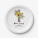 Happy gelbe Sonnenblumen, Eukalyptus und erdgrünes Pampasgras, das auf einem dunklen Holzkreuz ausgestellt ist, schaffen ein elegantes, blumengeschmücktes Design für Ihre Taufe-Teller. Diese Teller eignen sich perfekt für Spätsommer oder Herbsttaufe.