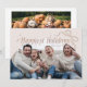 Niedliche Weihnachts-Fotoschablone mit einem Text, der "glücklichste Ferien" sagt. Fügen Sie Ihre Familienbilder auf dieser beigen Bogen-Rahmenkarte hinzu. Es gibt eine Abbildung eines Bogens.
