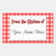 Retro country red and white pläd pattern of checks and stripes on customizable stickers reading from the Kitchen of in retro red and black letters, with script letters for your name on falsch doily. Customize it to change fonts or sizing, add fields or change background colors or label shape, even save your design for later.