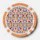 Front and back views of a poker chip with a colorful floral pattern featuring orange, purple, and black flowers. The chip has orange and white segments.