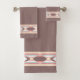 Serviette marron cacao avec bordure d'un Amérindien, Aztèque design brun, mauve, gris et rose. Il y a aussi un ensemble de serviettes dans le magasin qui sont entièrement dans le design afin que vous puissiez mélanger et assortir pour un look varié. Il y a beaucoup plus d'objets de coordination dans le magasin aussi pour que vous puissiez faire une magnifique salle de bain du sud-ouest ou amérindien.