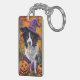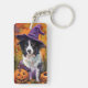 Embrassez l'esprit d'Halloween avec ce design enchanteur avec un chien mignon dans un casquette sorcier entouré de citrouilles sculptés. Parfait pour ajouter une touche de charme éffrayant à vos célébrations festives.