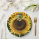 Ein niedlicher Frosch mit einem Strohhut, der auf einer lebendigen Sonnenblume steht und eine skurrile Szene schafft
