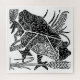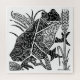 Ein geometrisch geformter Frosch mit einem abstrakten Blumenmuster in Schwarz/Weiß.