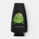 Grüner Frosch Cartoon mit goldener Krone. Prinzfrosch. Benutzerdefinierte Hintergrundfarbe. Eigener Text.