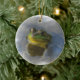 Dieses Urlaubssornament besticht durch einen konfrontativen grünen Frosch, der an einem heißen Tag im flachen Wasser am Rande des Sees cool bleibe.