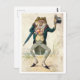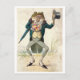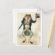 Diese Postkarte ist eine Reproduktion einer Vintagen Illustration, die einen Dapperfrosch mit einem Oberhut, einem Strauß an Blume und einem Regenschirm zeigt. Er trägt einen Anzug.