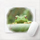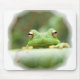 Frosch-Fotoentwurf auf einer Lilienauflage in einem Sumpf mit großen Augen.