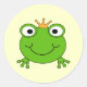 Froschprinz. Frosch lächeln mit einer Krone. Runder Aufkleber