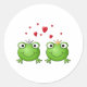 Froschprinz und Froschprinzessin, mit Herzen. Runder Aufkleber