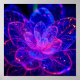 An ethereal form sculpted from frosted glass with neon vein details, glowing against a dark background—a luminous cyberpunk botanical art print