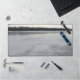 Eine Schreibtischmatte mit einem Foto eines gefrorenen Sees.