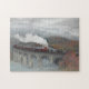 Von einem originalen Acryl-Gemälde von Rebecca Französisch, das ist der Glenfinnan Viadukt im Frost, mit einem Dampfzug, der über ihm mit Kräften von hellem Dampf aus dem Kamin, Nebel im Tal und ein Sprinkle von Schnee auf den Hügeln.