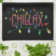 Karo aus diesem lustigen Set von Urlaubslichtern, die mit Frosty the Snowman's Gesichtsausdruck scheinen, umhüllt von dem Wort "Chillax" aus Bonbons!