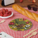 Früchte und Erdbeeren auf Mustrard Pappteller