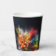 Eine lebendige Explosion frischer Früchte, einschließlich Äpfel, Erdbeeren, Bananen und Beeren, künstlerisch in einem dynamischen wirbelnden Muster angeordnet. Helle Farbspritzen - Rot, Gelb, Grüntöne und Blues - verbinden sich mit den Früchten und schaffen eine dynamische und lebendige Komposition. Der Hintergrund ist dunkel, um die Lebhaftigkeit der Farben und die Frische der Früchte zu steigern, was ein Gefühl von Vitalität und Überfluss hervorruft.