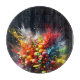 Eine lebendige Explosion frischer Früchte, einschließlich Äpfel, Erdbeeren, Bananen und Beeren, künstlerisch in einem dynamischen wirbelnden Muster angeordnet. Helle Farbspritzen - Rot, Gelb, Grüntöne und Blues - verbinden sich mit den Früchten und schaffen eine dynamische und lebendige Komposition. Der Hintergrund ist dunkel, um die Lebhaftigkeit der Farben und die Frische der Früchte zu steigern, was ein Gefühl von Vitalität und Überfluss hervorruft.