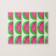 von Pop Art, ist diese originale Aquarellbild ein Design von niedlichen, angesagten, rosa und grüne Wassermelonobst in einem Muster auf einem pastellgelben gelben Hintergrund. Dieses komische, lustige Obstdesign ist hell und farbenfroh und bringt ein Lächeln.