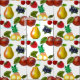 Fruchtsalat, Äpfel, Birnen, Kirschen, Himbeeren, Heidelbeeren und Ananas