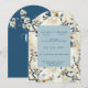 Hübsche Hochzeitseinladung mit wunderschönen Blüten aus weißer und blauer Blume. Hellblauer Bereich für Ihren Text. Reverse ist eine aquamarine, elegante Blautöne mit Akzent auf der Blume. Personalisieren Sie mit Ihrem Text.