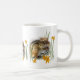 Diese Tasse kennzeichnet einen niedlichen kleinen Chipmunk, der seine chubby Backen so schnell anfüllt, wie er an einem Frühlingstag kann. Er hat einen Schwarzweiss-Streifen hinunter seins zurück, weiß um die Augen, den goldenen braunen Pelz und eine rosa Nase. Das süße kleine Lebewesen wird durch grünes Gras und gelbe Lilien umgeben. Der Entwurf ist wiederholtes links, Mittel- und recht.