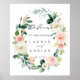 Elegantes Begrüßungszeichen mit einem Kranz von Aquarellfarben-Blume in Rosa und Weiß mit grünem Blattwerk. Für eine weiter gehende Anpassung dieses Designs klicken Sie bitte auf den Button "Anpassen". Matching-Elemente sind ebenfalls verfügbar.